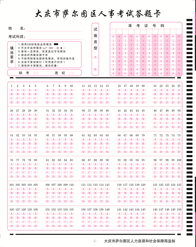 人事考試機讀答卷紙